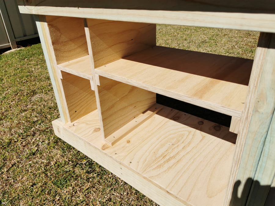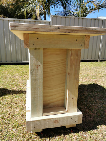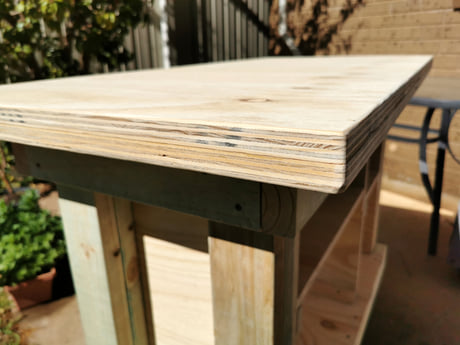 It's made from a full sheet of 19mm thick structural A bond plywood and about 13 metres of 90x35mm structural treated pine.