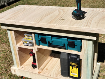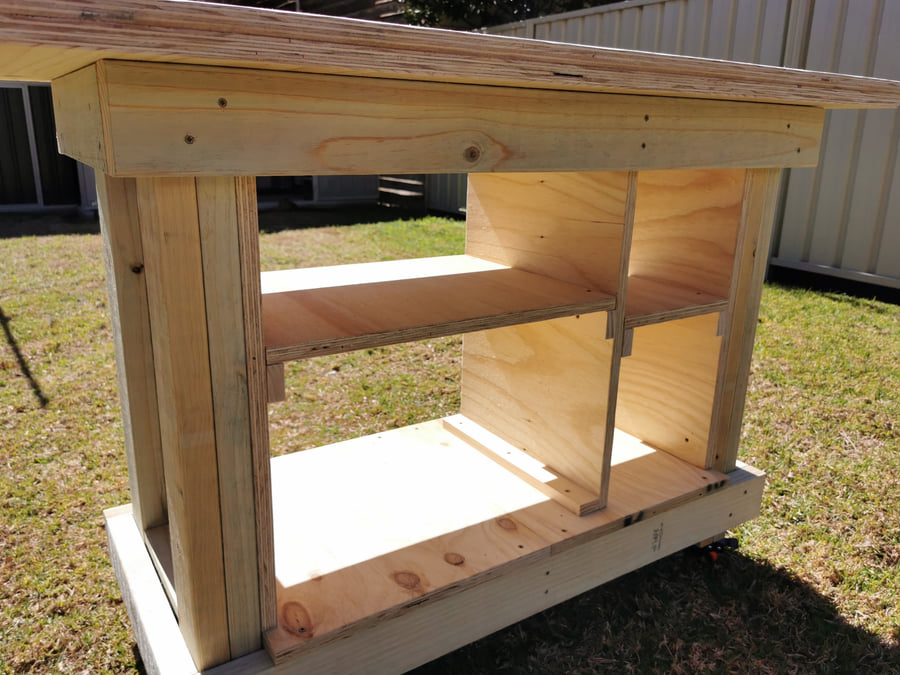This heavy duty mobile workbench is built to last for many years and be easily modified for any purpose.