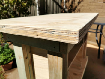 The bench top is made from two 19mm plywood sheets glued together. Measuring 1200mm x 580mm.