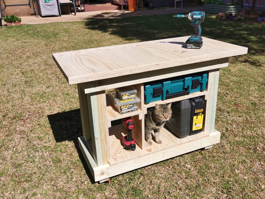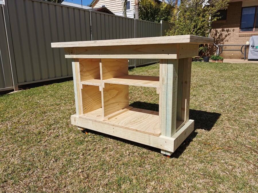 Everyone needs a workbench. Even if you have one, another never goes astray. Being on wheels means you can put it where you need it and move it aside when not in use. Great if you have a small area (or a big one!)